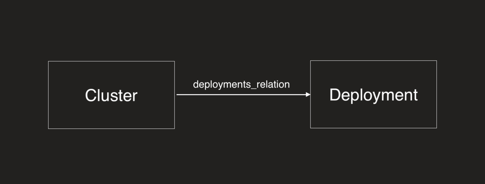The fromBlueprint: "cluster" specifies that the path traversal should start from the cluster blueprint (the target), then follow the path backwards through deployments_relation to deployment.