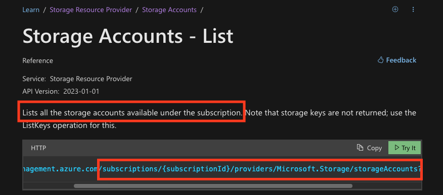 resource was found in the Storage Account Rest APIapiVersion: "2023-01-01"